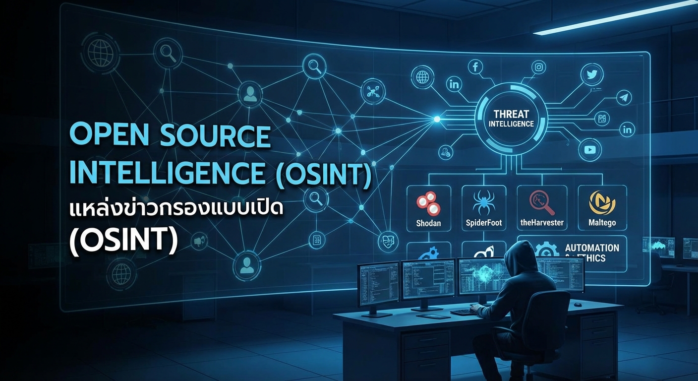 บทความนี้เน้นย้ำถึง Open Source Intelligence (OSINT) ในฐานะองค์ประกอบสำคัญของการข่าวกรองภัยคุกคามทางไซเบอร์ โดยชี้ให้เห็นถึงบทบาทของ OSINT ในการช่วยองค์กรตรวจจับ วิเคราะห์ และลดภัยคุกคามทางไซเบอร์ เช่น การละเมิดข้อมูล การโจมตีแบบฟิชชิ่ง และการปฏิบัติการของรัฐชาติ ด้วยการใช้ข้อมูลที่เปิดเผยต่อสาธารณะ บทความได้อธิบายถึงเครื่องมือ OSINT ที่จำเป็น เช่น Shodan, SpiderFoot, theHarvester และ Maltego โดยอธิบายถึงฟังก์ชันการทำงานในการค้นหาทรัพย์สินที่เปิดเผย การแจกแจงโดเมนย่อย/อีเมล และการแสดงภาพความสัมพันธ์ของภัยคุกคาม นอกจากนี้ บทความยังเน้นย้ำถึงความสำคัญของการทำงานอัตโนมัติเพื่อการรวบรวมข้อมูลข่าวกรองที่มีประสิทธิภาพและการเชื่อมโยงแบบเรียลไทม์กับระบบ SIEM พร้อมทั้งแนวทางปฏิบัติที่ดีที่สุดและข้อควรพิจารณาทางกฎหมายสำหรับการดำเนินงาน OSINT อย่างมีจริยธรรมและปลอดภัย