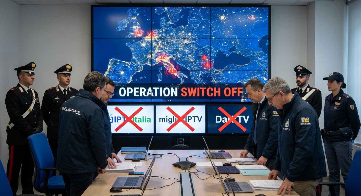 ปฏิบัติการ ‘Switch Off’ ที่ประสานงานโดย Europol, Eurojust และ Interpol ภายใต้การนำของสำนักงานอัยการเขต Catania และตำรวจอิตาลี ได้ประสบความสำเร็จในการทลายบริการ IPTV ผิดกฎหมายขนาดใหญ่ 3 ราย ได้แก่ IPTVItalia, migliorIPTV และ DarkTV โดยครอบคลุม 14 ประเทศทั่วโลก การดำเนินการนี้ทำให้สามารถระบุผู้ต้องสงสัย 31 คน ที่เกี่ยวข้องกับองค์กรอาชญากรรมข้ามชาติ ซึ่งถูกกล่าวหาว่ากระทำการแพร่ภาพรายการโทรทัศน์แบบมีเงื่อนไขโดยไม่ได้รับอนุญาต การเข้าถึงระบบคอมพิวเตอร์โดยไม่ได้รับอนุญาต การฉ้อโกงทางคอมพิวเตอร์ การจดทะเบียนทรัพย์สินปลอม และการฟอกเงิน ปฏิบัติการนี้มีความสำคัญเป็นพิเศษสำหรับอิตาลี เนื่องจากเป็นช่วงก่อนการแข่งขันกีฬาโอลิมปิกฤดูหนาวที่มิลาน นอกจากนี้ กระทรวงยุติธรรมสหรัฐฯ ยังได้ประกาศการทลายเว็บไซต์ละเมิดลิขสิทธิ์ขนาดใหญ่ 3 แห่งในบัลแกเรีย ได้แก่ zamunda.net, arenabg.com และ zelka.org ซึ่งเป็นที่นิยมอย่างมากในประเทศดังกล่าว
