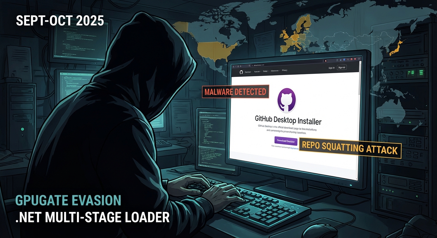 อาชญากรไซเบอร์กำลังใช้ช่องโหว่ในวิธีการทำงานของ GitHub เพื่อหลอกลวงนักพัฒนาให้ดาวน์โหลดมัลแวร์ที่ปลอมเป็นโปรแกรมติดตั้ง GitHub Desktop อย่างเป็นทางการ การโจมตีนี้เกิดขึ้นระหว่างเดือนกันยายนถึงตุลาคม 2025 โดยมุ่งเป้าไปที่ผู้ใช้ในยุโรปและเขตเศรษฐกิจยุโรปเป็นหลัก ก่อนจะแพร่กระจายไปยังญี่ปุ่นและภูมิภาคอื่นๆ การโจมตีใช้เทคนิค ‘repo squatting’ และกลยุทธ์การหลบเลี่ยงการตรวจจับที่ซับซ้อน รวมถึงเทคนิคต่อต้านการวิเคราะห์มัลแวร์โดยใช้ GPU (GPUGate) เพื่อส่งมอบมัลแวร์ประเภท .NET multi-stage loader ที่สามารถหลบเลี่ยงเครื่องมือรักษาความปลอดภัยทั่วไปได้