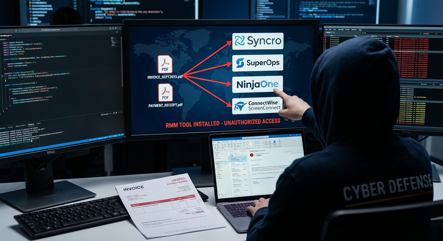 คลื่นลูกใหม่ของการโจมตีทางไซเบอร์ที่ผู้โจมตีใช้ไฟล์ PDF ที่เป็นอันตรายเพื่อหลอกให้ผู้ใช้งานติดตั้งเครื่องมือ Remote Monitoring and Management (RMM) ลงในระบบของตน การโจมตีเหล่านี้ใช้ประโยชน์จากความน่าเชื่อถือของซอฟต์แวร์ RMM เช่น Syncro, SuperOps, NinjaOne และ ConnectWise ScreenConnect เพื่อเข้าถึงระบบของเหยื่อโดยไม่ได้รับอนุญาต โดยไฟล์ PDF ที่เป็นอันตรายจะถูกปลอมแปลงเป็นเอกสารทางการเงินเช่น ‘Invoice’ หรือ ‘Payment’ และส่งผ่านแคมเปญฟิชชิ่ง