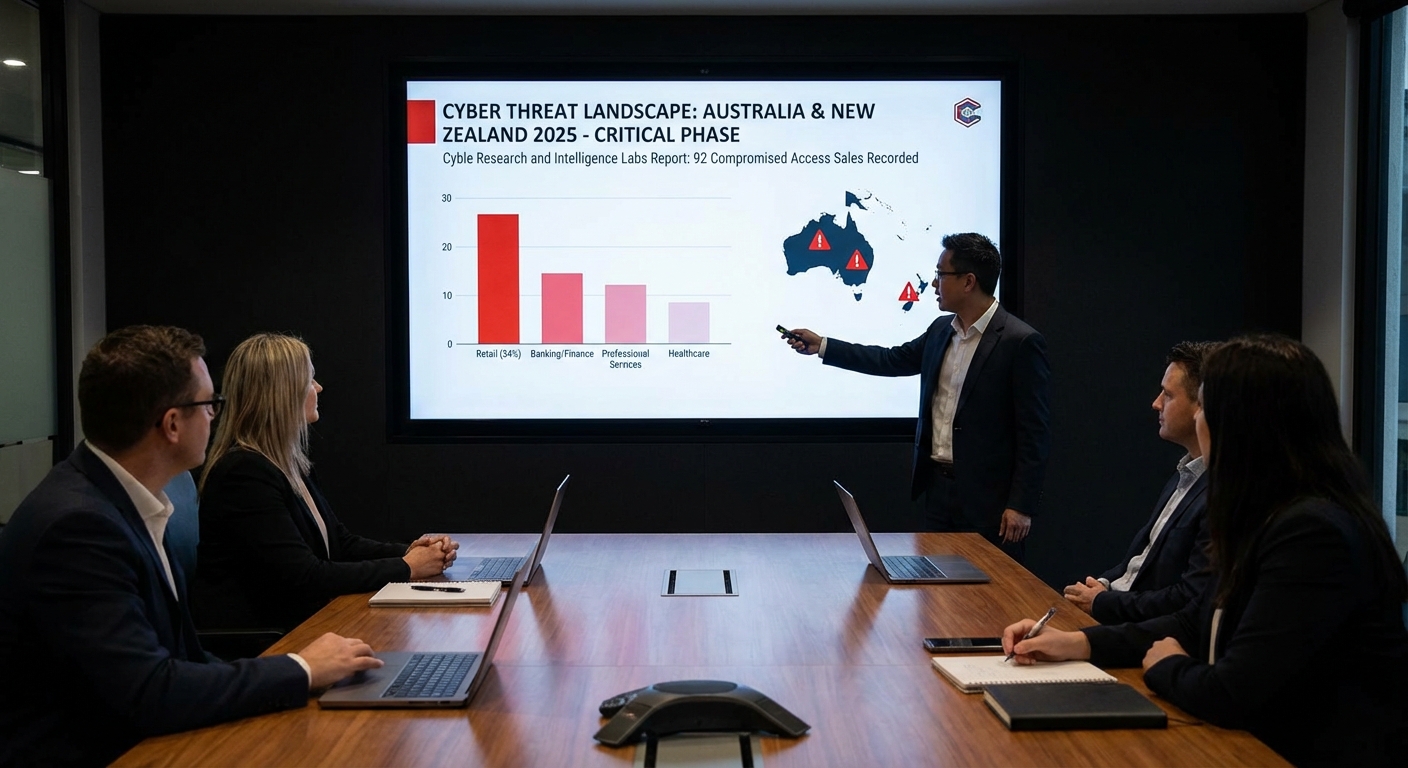 สภาพแวดล้อมภัยคุกคามทางไซเบอร์ในออสเตรเลียและนิวซีแลนด์เข้าสู่ระยะวิกฤตตลอดปี 2025 โดยผู้โจมตีดำเนินการโจมตีที่ซับซ้อนมากขึ้นโดยมุ่งเน้นที่การขายสิทธิ์การเข้าถึงเครือข่ายที่ถูกบุกรุก Cyble Research and Intelligence Labs บันทึกการขายสิทธิ์การเข้าถึงที่ถูกบุกรุก 92 ครั้ง ซึ่งส่งผลกระทบต่อองค์กรในทั้งสองภูมิภาค เผยให้เห็นตลาดใต้ดินที่สมบูรณ์และเป็นเชิงพาณิชย์ที่มีการซื้อขายข้อมูลประจำตัวและจุดเข้าถึงเครือข่ายที่ถูกขโมยอย่างเปิดเผย การโจมตีเหล่านี้ส่งผลกระทบต่ออุตสาหกรรมที่มีข้อมูลจำนวนมากอย่างไม่สมส่วน โดยเฉพาะภาคค้าปลีก ธนาคาร บริการทางการเงิน ประกันภัย บริการมืออาชีพ และองค์กรด้านการดูแลสุขภาพ โดยภาคค้าปลีกเป็นเป้าหมายหลักคิดเป็น 34% ของการขาย Initial Access ทั้งหมด.