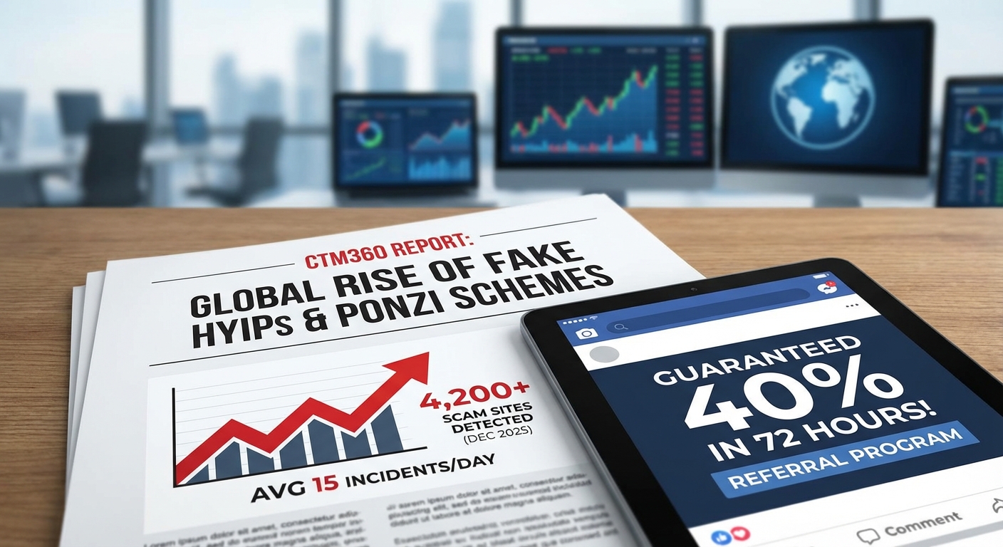รายงานของ CTM360 ชี้เตือนถึงการเพิ่มขึ้นอย่างรวดเร็วของโปรแกรมการลงทุนผลตอบแทนสูงปลอม (HYIPs) ทั่วโลก ซึ่งอ้างผลตอบแทนที่ ‘รับประกัน’ แต่แท้จริงแล้วคือกลโกงแบบ Ponzi schemes แพลตฟอร์มเหล่านี้ล่อลวงเหยื่อด้วยคำมั่นสัญญาผลตอบแทนที่เกินจริง เช่น ‘40% ใน 72 ชั่วโมง’ โดยอาศัยการตลาดผ่านโซเชียลมีเดีย, การใช้เทมเพลตเว็บไซต์ซ้ำๆ, และการใช้โปรแกรมแนะนำเพื่อนเพื่อขยายวงกว้าง CTM360 ตรวจพบเว็บไซต์หลอกลวงมากกว่า 4,200 แห่ง และมีเหตุการณ์เกิดขึ้นเฉลี่ย 15 ครั้งต่อวันในเดือนธันวาคม 2025 โดยการหลอกลวงจะจบลงด้วยการระงับการถอนเงินและเว็บไซต์หายไปในที่สุด