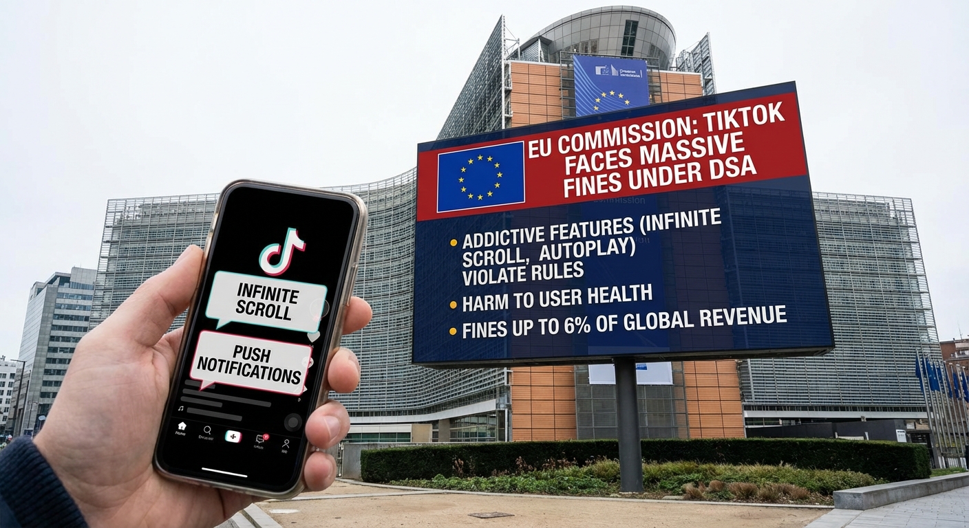 คณะกรรมาธิการยุโรปได้ประกาศว่า TikTok กำลังเผชิญกับค่าปรับจำนวนมาก เนื่องจากคุณสมบัติที่ทำให้เสพติด เช่น การเลื่อนแบบไม่มีที่สิ้นสุด (infinite scroll), การเล่นอัตโนมัติ (autoplay), การแจ้งเตือนแบบพุช (push notifications) และระบบแนะนำเนื้อหาส่วนบุคคล (personalized recommendation systems) ได้ละเมิดพระราชบัญญัติบริการดิจิทัล (Digital Services Act – DSA) ของสหภาพยุโรป TikTok ไม่ได้ประเมินอย่างเพียงพอว่าคุณสมบัติเหล่านี้อาจเป็นอันตรายต่อสุขภาพกายและสุขภาพจิตของผู้ใช้งาน โดยเฉพาะเด็กและผู้ใหญ่ที่มีความเปราะบาง ซึ่งนำไปสู่พฤติกรรม compulsive และลดการควบคุมตนเอง หากได้รับการยืนยัน การละเมิดเหล่านี้อาจส่งผลให้ถูกปรับสูงสุดถึง 6% ของรายได้ทั่วโลกของ TikTok เพื่อหลีกเลี่ยงค่าปรับ TikTok จำเป็นต้องเปลี่ยนแปลงการออกแบบบริการหลักโดยการใช้การหยุดพักหน้าจอ ปรับระบบแนะนำ และปิดใช้งานคุณสมบัติที่ทำให้เสพติดหลักๆ นอกจากนี้ บทความยังกล่าวถึงการสอบสวนทางอาญาในฝรั่งเศสเกี่ยวกับการละเมิดความเป็นส่วนตัวของเด็กและการส่งข้อมูลผู้ใช้ในเขตเศรษฐกิจยุโรปไปยังจีน ซึ่งก่อนหน้านี้เคยถูกปรับไปแล้วหลายร้อยล้านยูโร