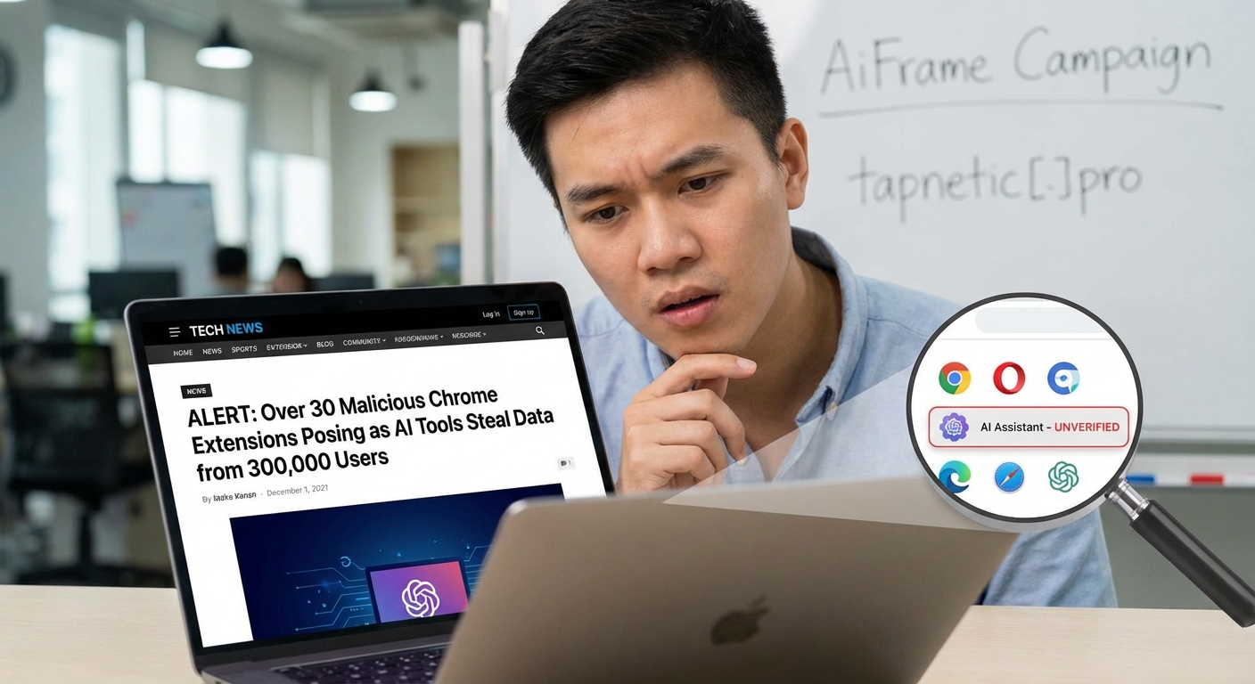 ส่วนขยาย Chrome ที่เป็นอันตรายกว่า 30 รายการ ซึ่งมีผู้ติดตั้งมากกว่า 300,000 คน ได้แอบอ้างว่าเป็นผู้ช่วย AI เพื่อขโมยข้อมูลรับรอง (credentials), เนื้อหาอีเมล และข้อมูลการท่องเว็บ โดยเป็นส่วนหนึ่งของแคมเปญที่ชื่อว่า ‘AiFrame’ ซึ่งสื่อสารกับโครงสร้างพื้นฐานภายใต้โดเมน tapnetic[.]pro ส่วนขยายเหล่านี้ไม่เพียงแต่ดึงข้อมูลทั่วไปจากการเยี่ยมชมเว็บไซต์ แต่ยังเจาะจงเป้าหมายข้อมูล Gmail และสามารถใช้ Web Speech API เพื่อบันทึกเสียงสนทนาของผู้ใช้ได้ด้วย
