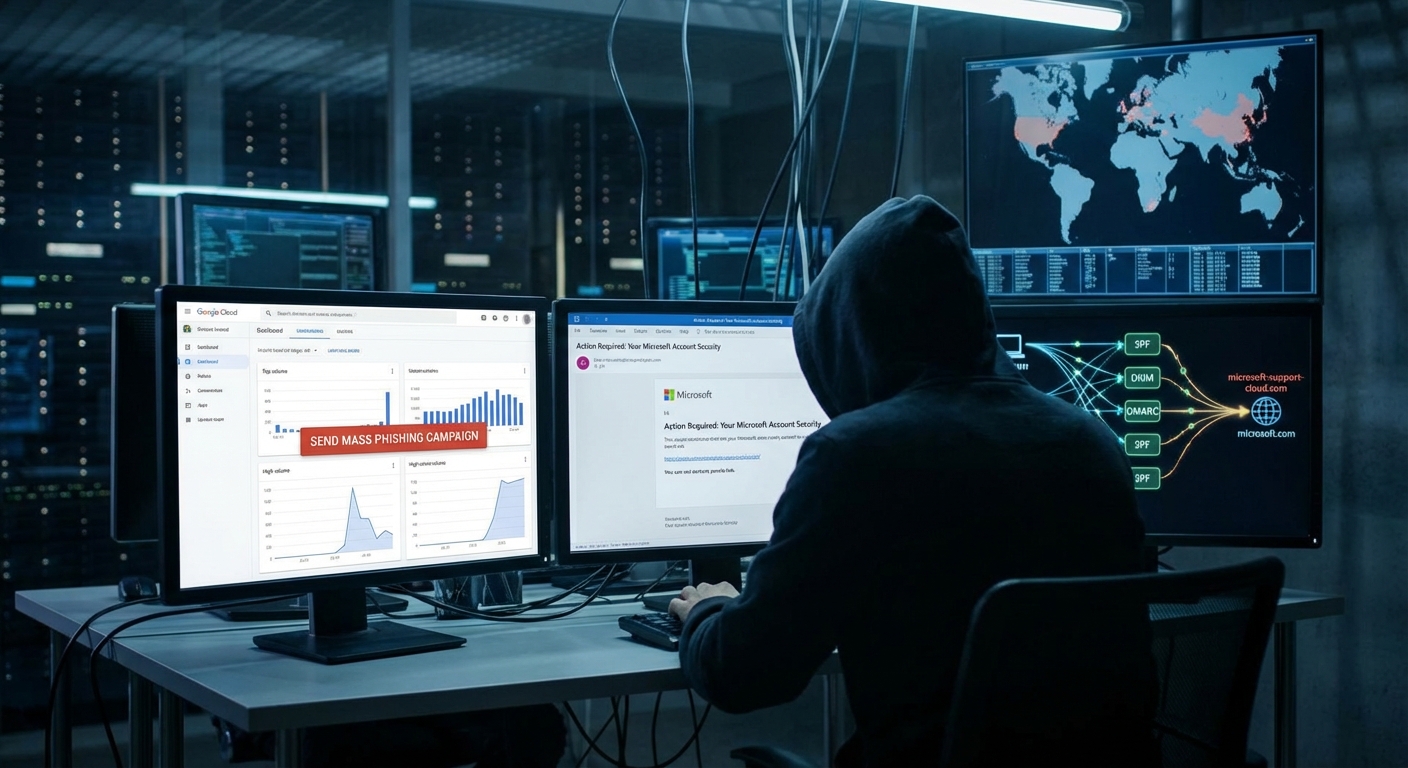 อาชญากรไซเบอร์กำลังใช้บริการ Google Cloud Email-as-a-Service เพื่อส่งอีเมลฟิชชิ่งจำนวนมาก โดยอาศัยความน่าเชื่อถือของโครงสร้างพื้นฐานของ Google และการตั้งค่า DNS ที่ถูกต้อง (SPF, DKIM, DMARC) เพื่อหลีกเลี่ยงการตรวจจับจากระบบความปลอดภัยอีเมลทั่วไป อีเมลฟิชชิ่งเหล่านี้มักปลอมแปลงเป็นบริการที่น่าเชื่อถือ เช่น Microsoft เพื่อหลอกล่อให้เหยื่อเปิดเผยข้อมูลประจำตัวหรือดาวน์โหลดมัลแวร์ การโจมตีนี้ใช้โดเมนที่ถูกสร้างขึ้นมาใหม่ซึ่งมีลักษณะคล้ายคลึงกับโดเมนจริง ทำให้ผู้รับหลงเชื่อว่าเป็นอีเมลที่ถูกต้อง