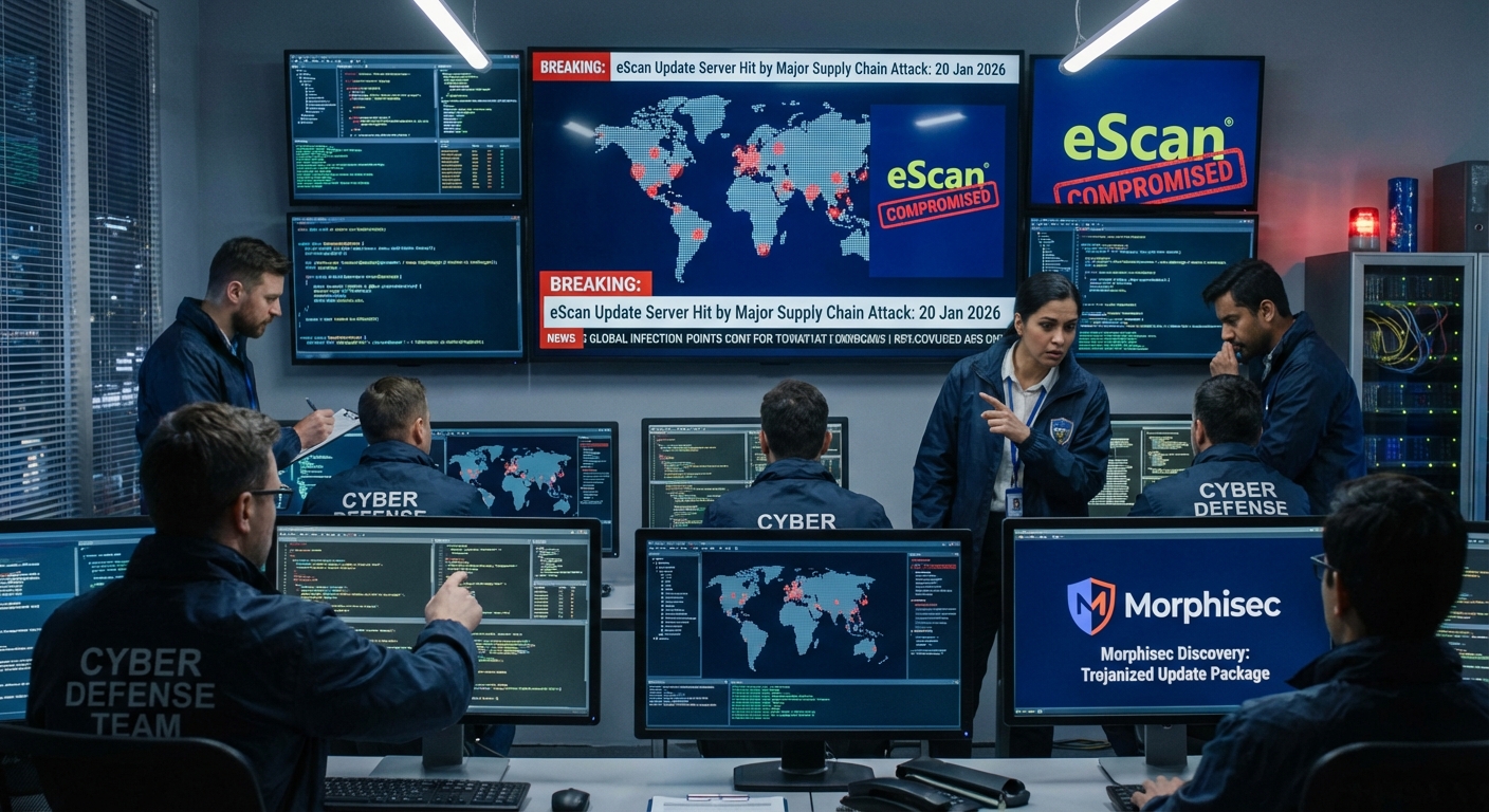 เซิร์ฟเวอร์อัปเดตของ eScan Antivirus ถูกโจมตีในรูปแบบ Supply Chain Attack ครั้งใหญ่ ทำให้นักโจมตีสามารถบุกรุกโครงสร้างพื้นฐานการอัปเดตที่ถูกต้องตามกฎหมายของผู้จำหน่ายเพื่อแจกจ่ายมัลแวร์ การโจมตีนี้ถูกค้นพบเมื่อวันที่ 20 มกราคม 2026 โดย Morphisec โดยใช้แพ็กเกจอัปเดตที่ถูกเปลี่ยนเป็นโทรจันเพื่อติดตั้งมัลแวร์หลายขั้นตอนบนอุปกรณ์ปลายทางขององค์กรและผู้บริโภคทั่วโลก ทำให้ซอฟต์แวร์ป้องกันไวรัสไร้ประสิทธิภาพและทำการปรับเปลี่ยนการตั้งค่าระบบเพื่อป้องกันการแก้ไขอัตโนมัติ