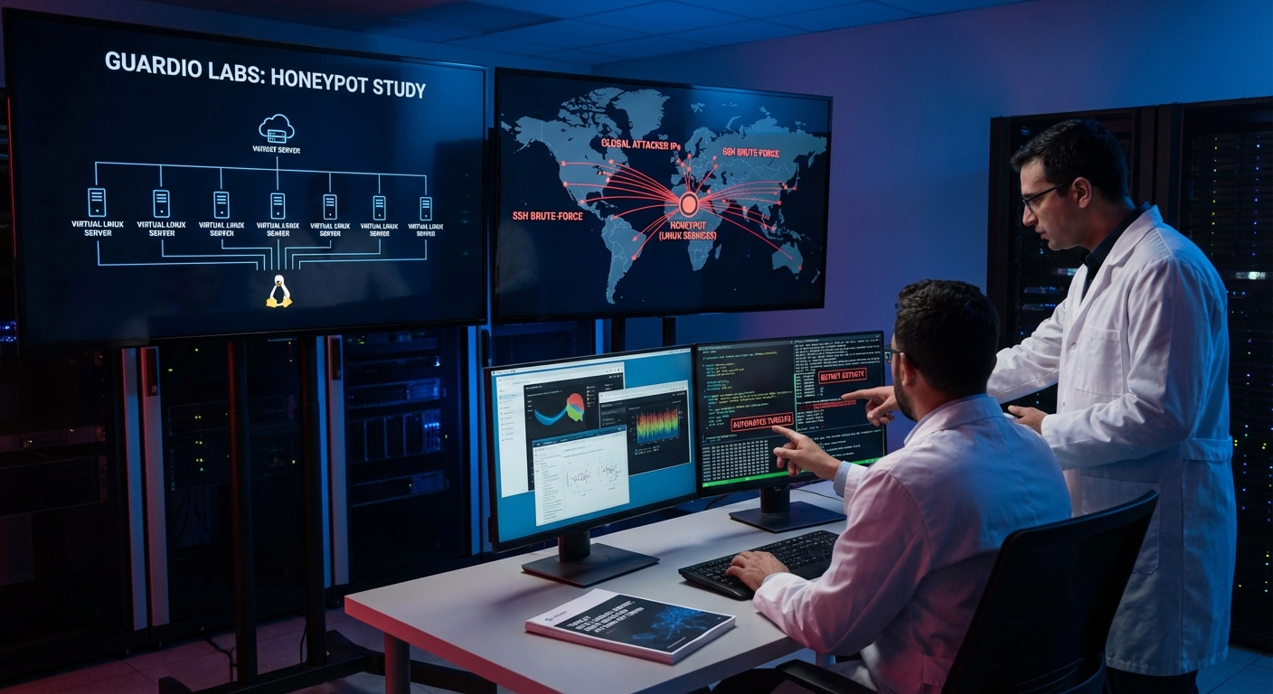 Guardio Labs ได้เปิดเผยผลการศึกษาจากการติดตั้ง Honeypot ซึ่งจำลองบริการ Linux ที่เปิดเผยต่ออินเทอร์เน็ต เพื่อดักจับและวิเคราะห์พฤติกรรมการโจมตีทางไซเบอร์ Honeypot นี้สามารถดึงดูดการโจมตีจำนวนมาก โดยเฉพาะอย่างยิ่งการโจมตีแบบ Brute-force บน SSH และกิจกรรมของ Botnet ทำให้ Guardio Labs สามารถรวบรวมข้อมูลเชิงลึกเกี่ยวกับรูปแบบการโจมตี เครื่องมือที่ใช้ และที่อยู่ IP ของผู้โจมตี เผยให้เห็นถึงภัยคุกคามอัตโนมัติที่แพร่หลายซึ่งมุ่งเป้าไปที่ช่องโหว่ทั่วไป