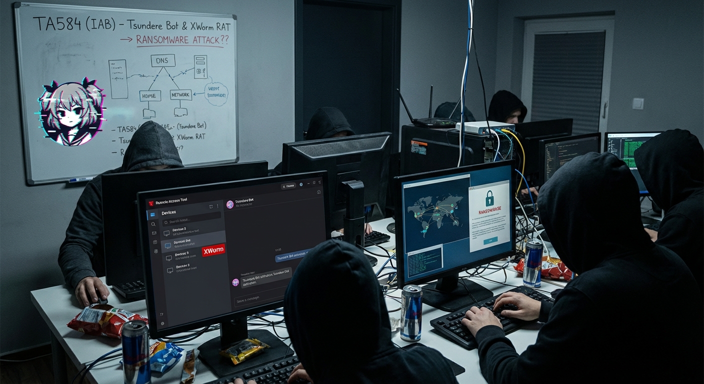 กลุ่มผู้ให้บริการ Initial Access Broker (IAB) ที่มีชื่อเสียงในชื่อ TA584 ถูกตรวจพบว่ากำลังใช้ Tsundere Bot ร่วมกับ XWorm remote access trojan (RAT) เพื่อเข้าถึงเครือข่าย ซึ่งอาจนำไปสู่การโจมตีแรนซัมแวร์ได้