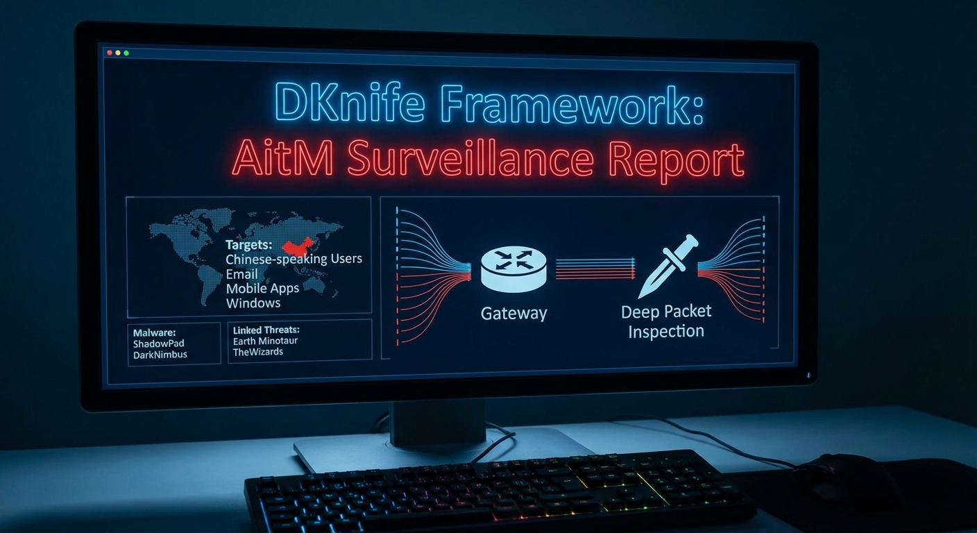 นักวิจัยด้านความปลอดภัยทางไซเบอร์ได้เปิดเผยข้อมูลเกี่ยวกับ DKnife ซึ่งเป็นเฟรมเวิร์กในการเฝ้าระวังเกตเวย์และทำการโจมตีแบบ Adversary-in-the-Middle (AitM) ที่ดำเนินการโดยกลุ่มแฮกเกอร์ที่เชื่อมโยงกับประเทศจีนตั้งแต่ปี 2019 เฟรมเวิร์กที่ใช้ Linux นี้จะติดตั้งมัลแวร์ในระดับเราเตอร์เพื่อทำการตรวจสอบแพ็กเก็ตข้อมูลเชิงลึก (deep packet inspection) ดักจับและปรับเปลี่ยนการรับส่งข้อมูล และส่งมัลแวร์ประเภท ShadowPad และ DarkNimbus เป้าหมายหลักคือผู้ใช้งานที่พูดภาษาจีน โดยมีการขโมยข้อมูลรับรอง (credentials) จากบริการอีเมลจีน ดักจับการอัปเดตแอปพลิเคชันมือถือยอดนิยมของจีน และแทนที่ไฟล์ติดตั้ง Windows การโจมตีนี้มีความเชื่อมโยงกับกลุ่มภัยคุกคามอื่น ๆ เช่น Earth Minotaur และ TheWizards ซึ่งแสดงให้เห็นถึงความซับซ้อนและต่อเนื่องของแคมเปญโจมตีเราเตอร์เหล่านี้