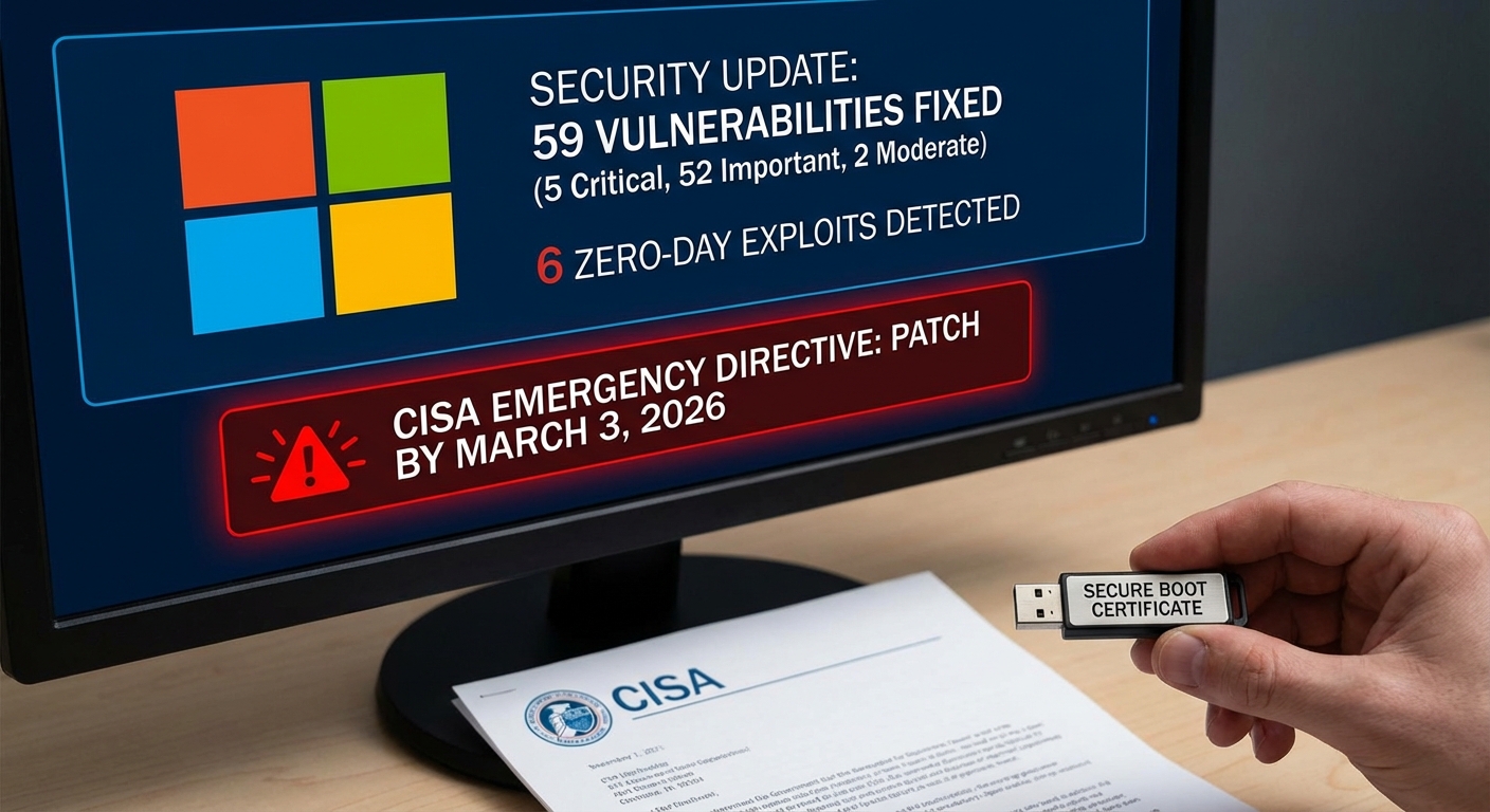 Microsoft ได้ออกอัปเดตความปลอดภัยเพื่อแก้ไขช่องโหว่ 59 รายการในซอฟต์แวร์ของตน ซึ่งรวมถึงช่องโหว่ร้ายแรง 5 รายการ, สำคัญ 52 รายการ และปานกลาง 2 รายการ ที่สำคัญคือมี 6 ช่องโหว่ที่เป็น Zero-Day ที่ถูกโจมตีจริง ทำให้ CISA ของสหรัฐฯ ออกคำสั่งให้หน่วยงานราชการดำเนินการแก้ไขอย่างเร่งด่วนภายในวันที่ 3 มีนาคม 2026 นอกจากนี้ Microsoft ยังได้ออกใบรับรอง Secure Boot ที่อัปเดตแล้ว และกำลังเสริมความแข็งแกร่งในการป้องกันเริ่มต้นผ่านโครงการ Windows Baseline Security Mode และ User Transparency and Consent.