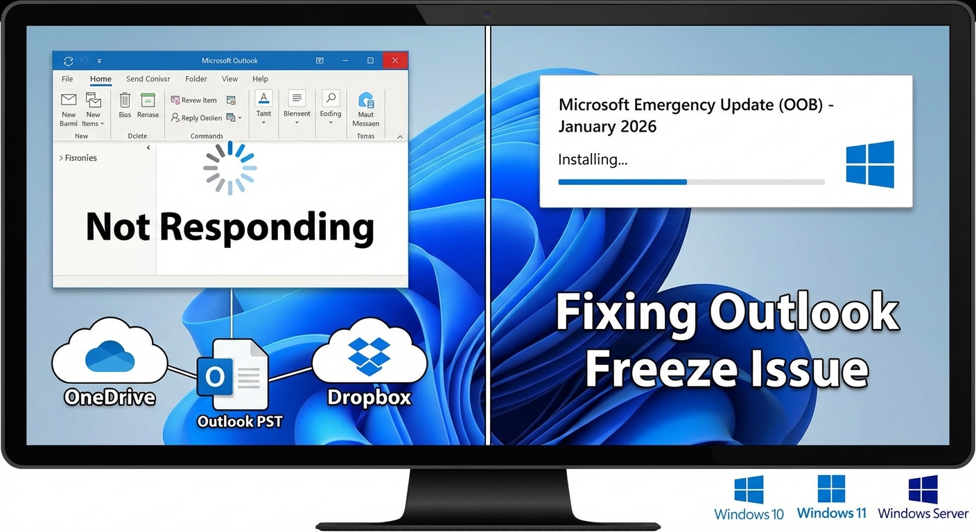 Microsoft ได้ออกอัปเดตฉุกเฉินแบบ Out-of-Band (OOB) สำหรับ Windows 10, Windows 11 และ Windows Server เพื่อแก้ไขปัญหาที่ทำให้ Microsoft Outlook ค้างเมื่อผู้ใช้งานพยายามเปิดแอปพลิเคชัน โดยเฉพาะเมื่อไฟล์ข้อมูล Outlook PST ถูกจัดเก็บไว้ในบริการคลาวด์ เช่น OneDrive หรือ Dropbox ซึ่งปัญหานี้เกิดขึ้นหลังจากการติดตั้งอัปเดต Patch Tuesday เดือนมกราคม 2026