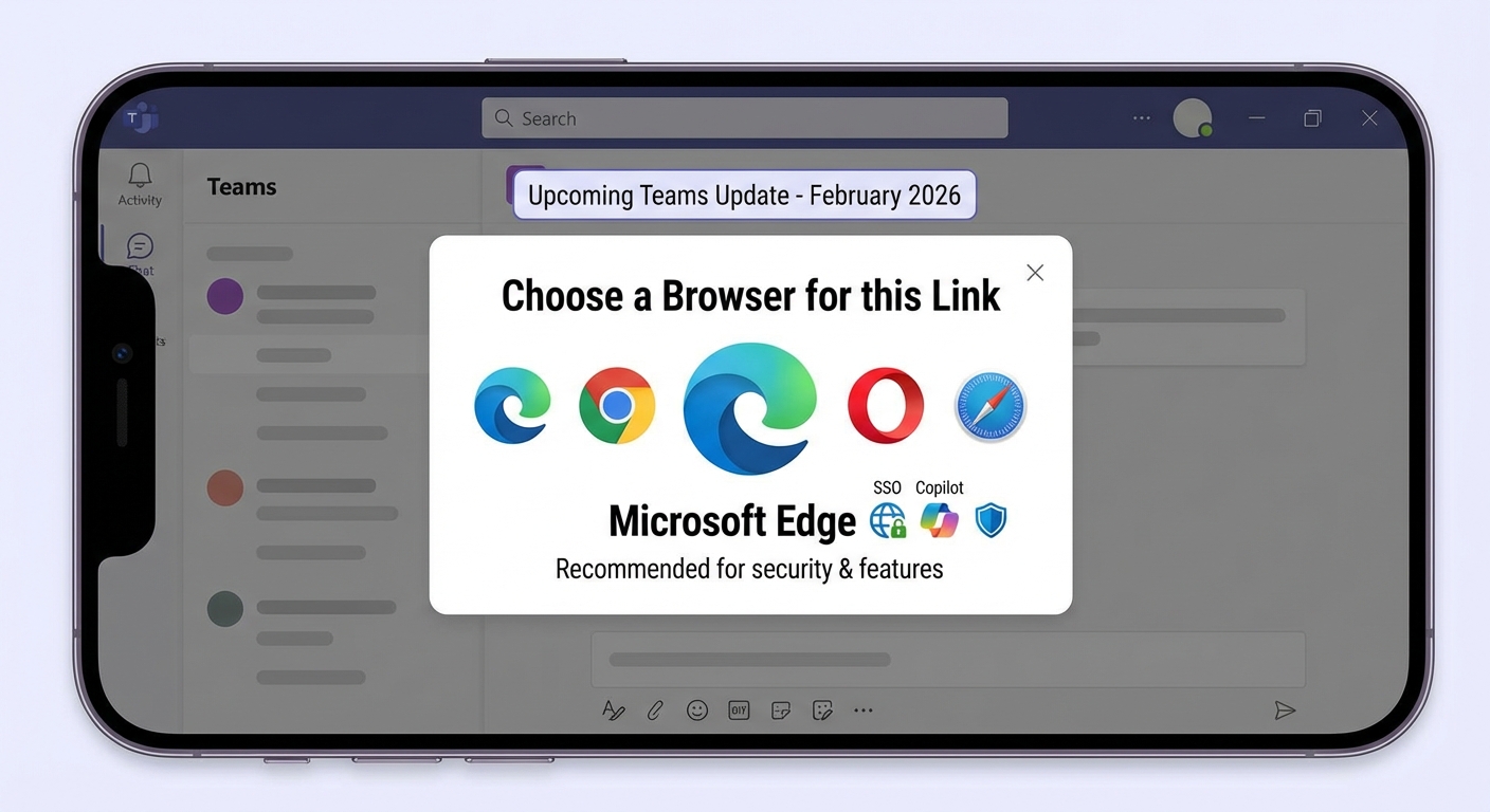 Microsoft กำลังจะออกอัปเดตสำคัญสำหรับ Teams Mobile บน Android และ iOS ซึ่งจะเปลี่ยนวิธีการจัดการลิงก์ที่ไม่ใช่ไฟล์ Office และ PDF โดยผู้ใช้จะได้รับการแจ้งเตือนให้เลือกเบราว์เซอร์เมื่อแตะลิงก์ไปยังไฟล์ที่ไม่ได้เป็นเอกสาร Office (Word, Excel, PowerPoint) หรือ PDF การอัปเดตนี้จะเริ่มใช้ในปลายเดือนกุมภาพันธ์ 2026 โดยมีเป้าหมายเพื่อปรับปรุงความปลอดภัยและประสบการณ์ผู้ใช้ โดยเฉพาะอย่างยิ่งการส่งเสริมให้ใช้ Microsoft Edge ซึ่งมีคุณสมบัติรองรับ Single Sign-On (SSO), การรวม Copilot และการควบคุมความปลอดภัยระดับองค์กรที่ได้รับการปรับปรุง ผู้ใช้ที่เลือก Edge แต่ยังไม่ได้ติดตั้ง จะได้รับการแจ้งเตือนให้ดาวน์โหลดก่อนดำเนินการต่อ ฟีเจอร์นี้จะเปิดใช้งานโดยค่าเริ่มต้นสำหรับทุกองค์กร แต่ผู้ดูแลระบบ IT สามารถควบคุมการทำงานได้ผ่าน PowerShell.