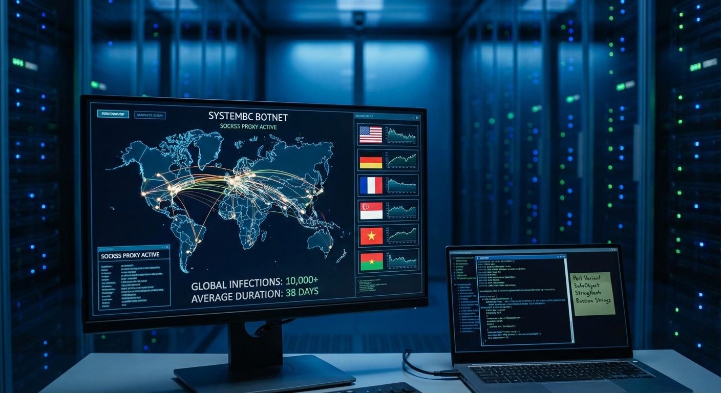 SystemBC ซึ่งเป็นมัลแวร์ตระกูลหนึ่งที่ถูกบันทึกครั้งแรกในปี 2019 ได้พัฒนาขึ้นเป็นโครงสร้างบอตเน็ตขนาดใหญ่ที่ควบคุมอุปกรณ์ที่ถูกยึดไปกว่า 10,000 เครื่องทั่วโลก มันทำหน้าที่หลักเป็น SOCKS5 proxy และ backdoor ที่ช่วยให้ผู้โจมตีสามารถปกปิดทราฟฟิกที่เป็นอันตรายและคงการเข้าถึงเครือข่ายที่ถูกบุกรุกได้ในระยะยาว โครงสร้าง ‘backconnect’ นี้ทำให้เครือข่ายมีความยืดหยุ่นและสามารถรอดพ้นจากการขัดขวางโดยหน่วยงานบังคับใช้กฎหมายได้ เช่น Operation Endgame ของ Europol ในเดือนพฤษภาคม 2024 ปัจจุบันบอตเน็ตได้เปลี่ยนเป้าหมายไปที่ผู้ให้บริการโฮสติ้งแทนเครือข่ายที่อยู่อาศัย ทำให้การติดเชื้อมักจะคงอยู่นานกว่าปกติ โดยเฉลี่ย 38 วัน และบางครั้งนานกว่า 100 วัน บอตเน็ตนี้ถือเป็นขั้นตอนสำคัญก่อนการติดตั้งแรนซัมแวร์ ใช้สำหรับการขโมยข้อมูลและการโจมตีเพิ่มเติม การวิเคราะห์พบว่าสหรัฐอเมริกาเป็นเป้าหมายหลักที่มีอุปกรณ์ถูกโจมตีมากกว่า 4,300 เครื่อง ตามด้วยเยอรมนี ฝรั่งเศส และสิงคโปร์ รวมถึงการบุกรุกในสภาพแวดล้อมของรัฐบาลที่สำคัญในเวียดนามและบูร์กินาฟาโซ นอกจากนี้ยังมีการค้นพบ SystemBC สายพันธุ์ Perl ที่ไม่เคยมีการบันทึกมาก่อน ซึ่งออกแบบมาเพื่อหลบเลี่ยงการตรวจจับจากโปรแกรมป้องกันไวรัสแบบดั้งเดิม โดยถูกติดตั้งผ่าน ELF binary droppers ชื่อ ‘SafeObject’ และ ‘StringHash’ ที่ใช้การแพ็คแบบ UPX เพื่อซ่อนโค้ดที่เป็นอันตราย Droppers เหล่านี้จะค้นหาไดเรกทอรีที่สามารถเขียนได้และดำเนินการติดตั้ง payload จำนวนมาก โค้ด dropper ยังมีสตริงภาษารัสเซีย ซึ่งอาจบ่งบอกถึงต้นกำเนิดของผู้คุกคาม
