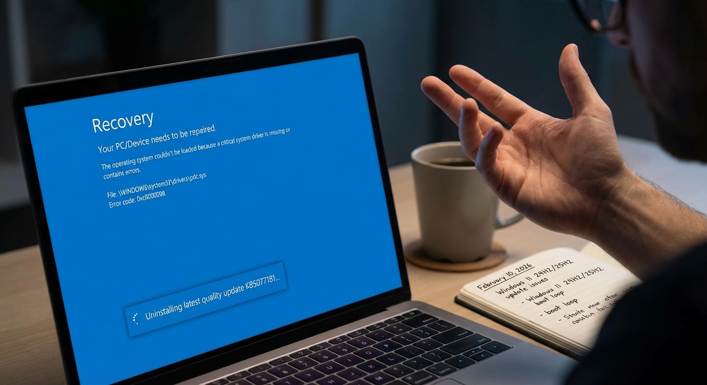 การอัปเดตความปลอดภัย KB5077181 ของ Microsoft สำหรับ Windows 11 เวอร์ชัน 24H2 และ 25H2 ที่เผยแพร่เมื่อวันที่ 10 กุมภาพันธ์ 2026 ได้รับรายงานปัญหาอย่างแพร่หลายว่าทำให้อุปกรณ์บางส่วนเกิดข้อผิดพลาดในการบูตเครื่องอย่างรุนแรง ผู้ใช้งานประสบปัญหาอุปกรณ์เข้าสู่วงจรการรีสตาร์ทไม่รู้จบ (infinite restart loops) มากกว่า 15 ครั้ง ซึ่งขัดขวางการเข้าถึงเดสก์ท็อป การอัปเดตนี้มีวัตถุประสงค์เพื่อแก้ไขช่องโหว่ด้านความปลอดภัย 58 รายการ รวมถึง 6 ช่องโหว่ Zero-day ที่ถูกโจมตีอยู่ในปัจจุบัน แต่กลับสร้างปัญหาการใช้งานอย่างรุนแรง.